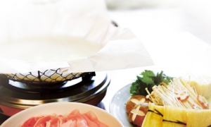 初めての人が驚く和紙なべ。和紙をなべがわりにして炊きますので、紙が余分な油やあくを吸い取ってくれます。和紙なべ用の和紙は、この店のためだけに漉かれおり、旨みだけが残るよう、独自の細工が施されています。締めの雑炊までおいしく、あっさりと味わえるヒミツは、この和紙に隠されています。